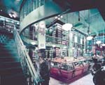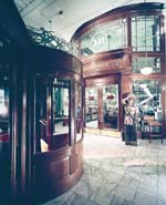 This popular Wall Street bar, restaurant and cigar store features a two-story, moisture-sealed, walk-in humidor with mezzanine. Custom mahogany woodwork includes all display cases, the bar, and a full-height revolving door and vestibule.